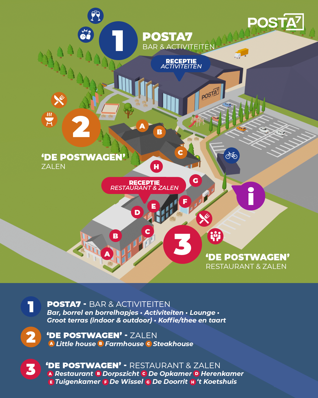 Etentjes en vergaderingen zijn in ons andere gebouw, ‘De Postwagen’.